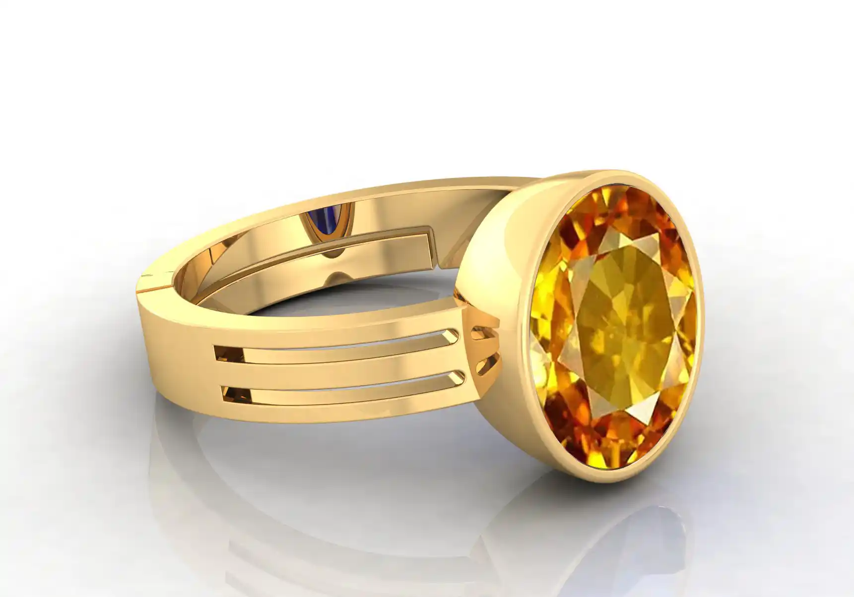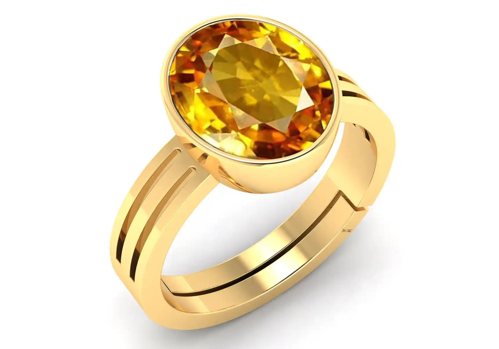 Yellow Sapphire Gemstone Gold Plated | Adjustable Ring With Lab Certificate