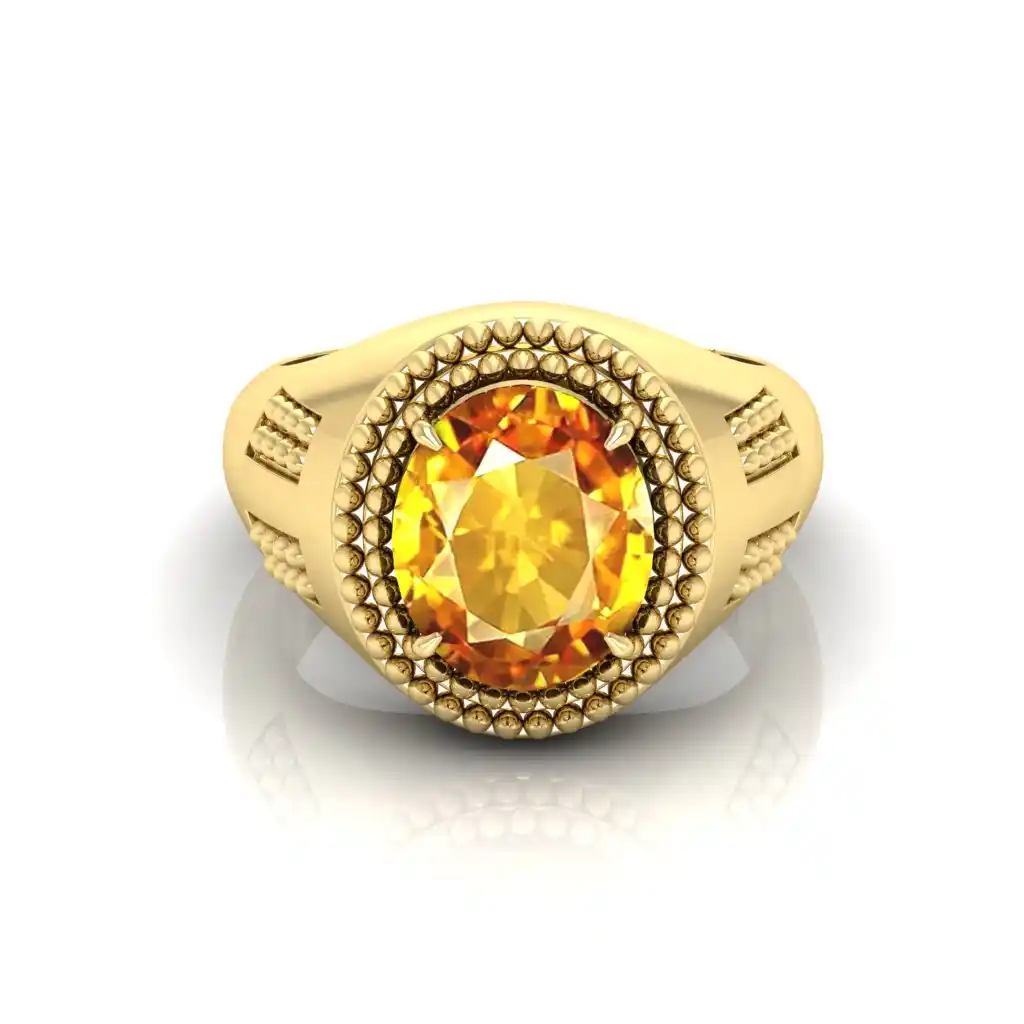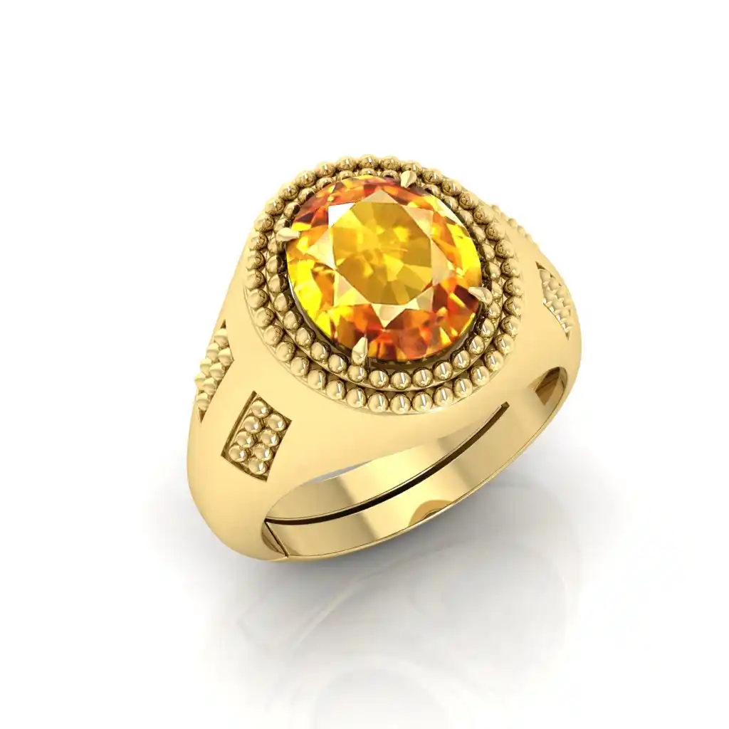 Yellow Sapphire Gemstone Gold Plated | Adjustable Ring With Lab Certificate for Men and Women